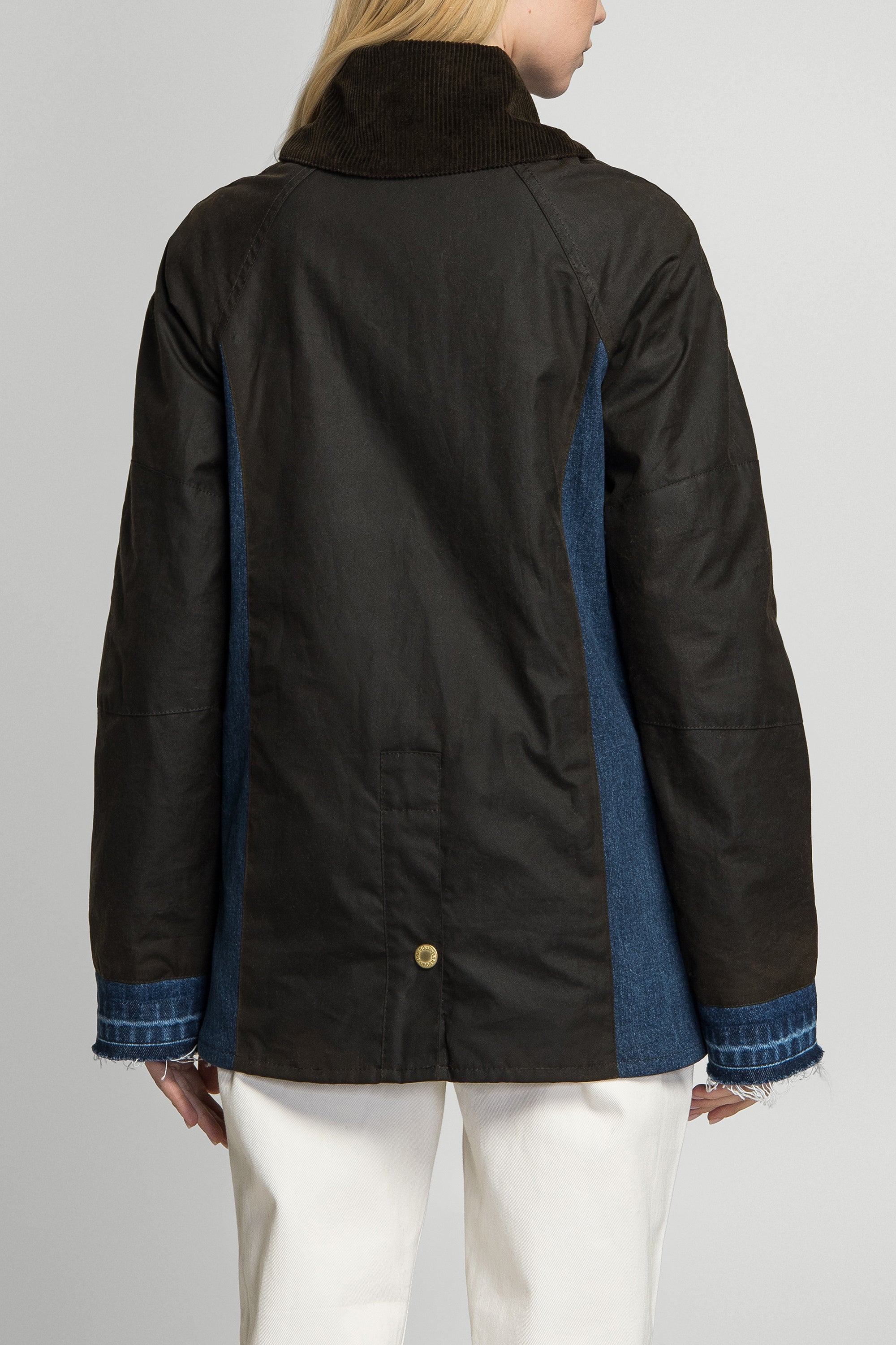Upcycled denim inserts are combined with Barbour’s iconic waxed cotton — the brand’s own invention.