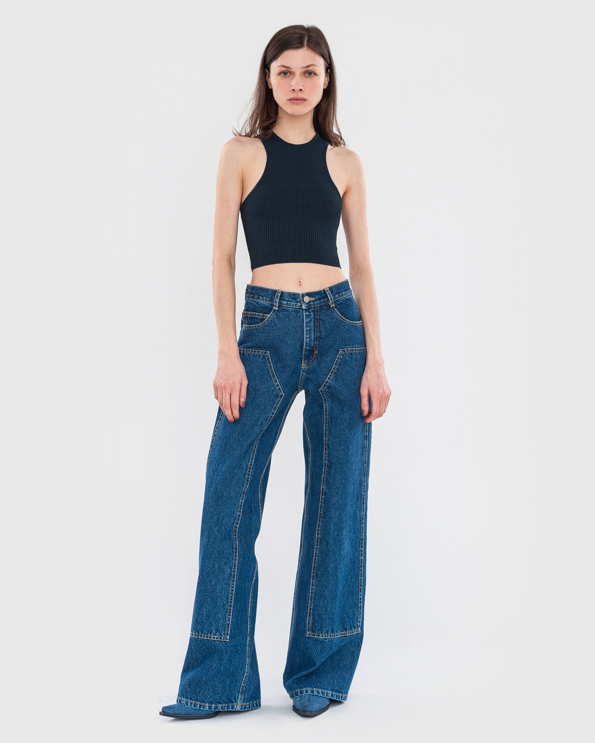 - Wide-leg straight jeans