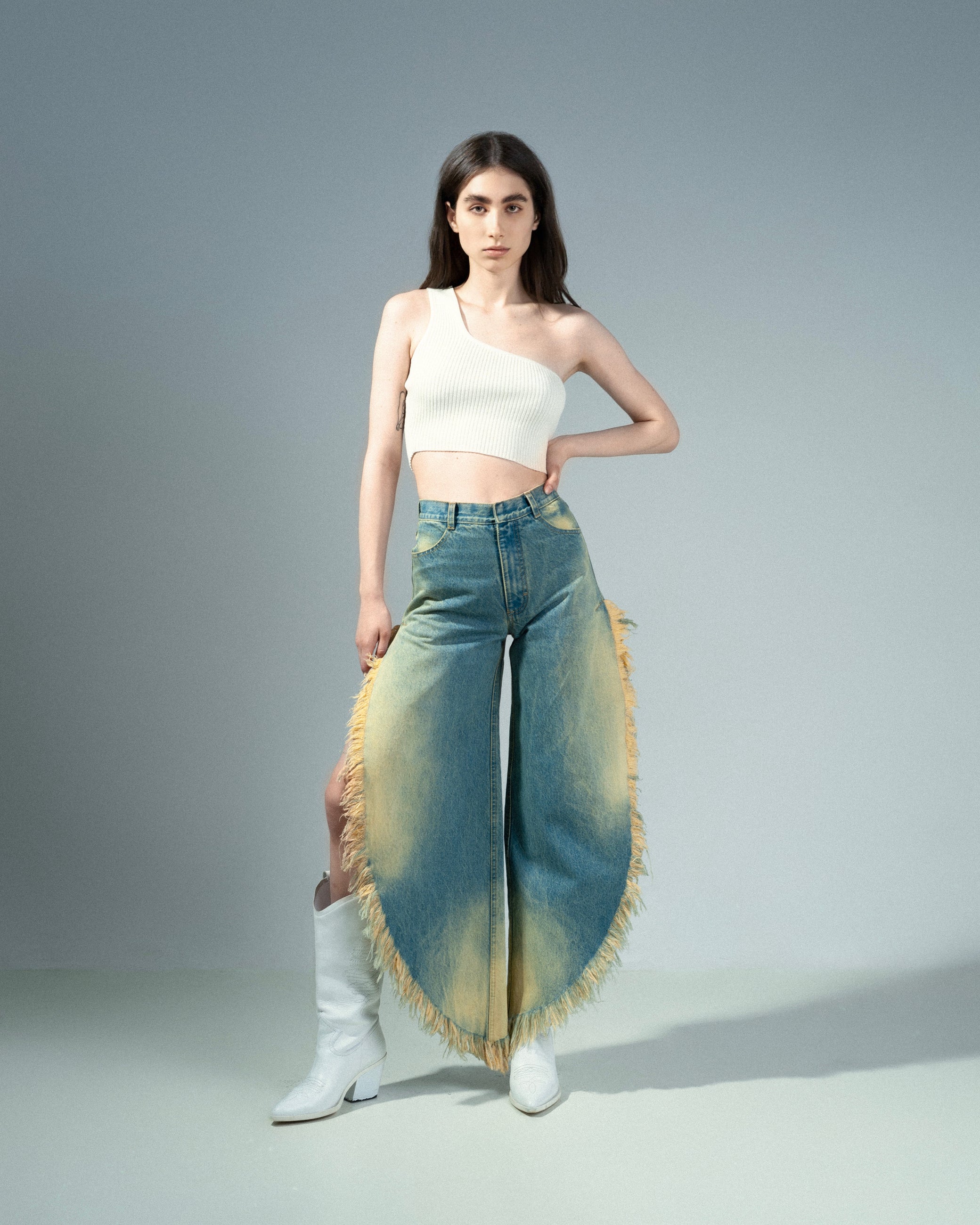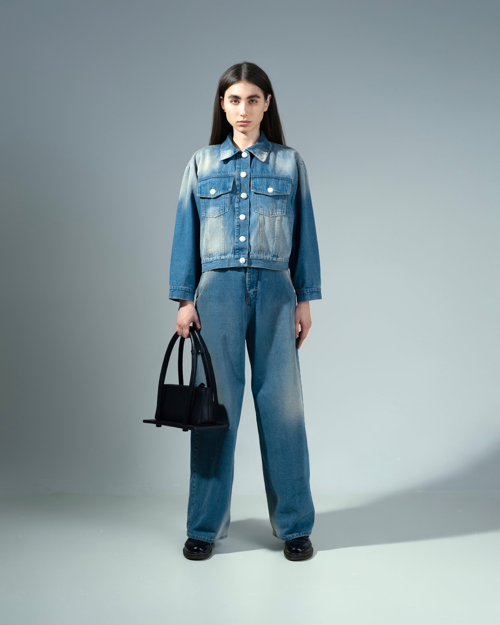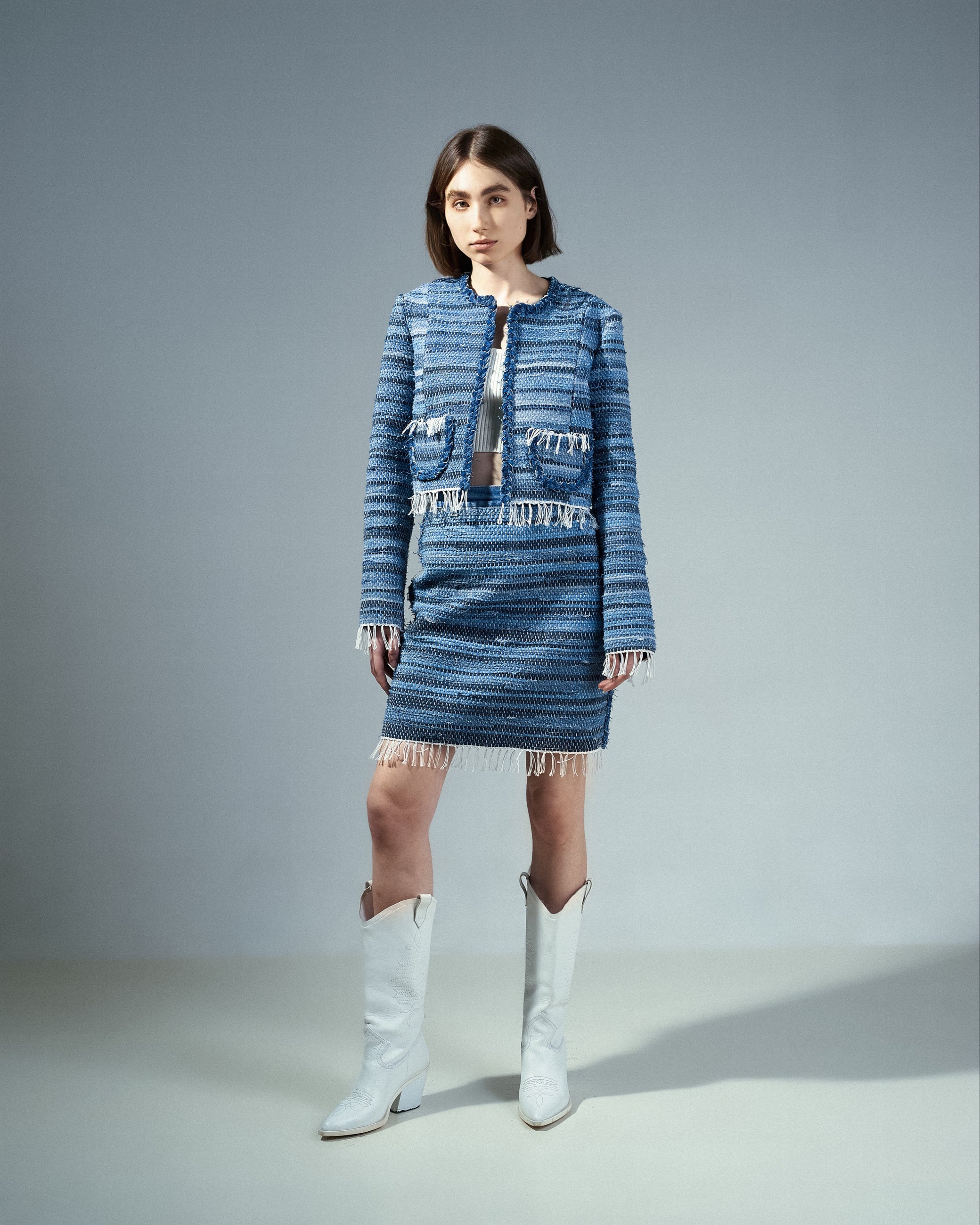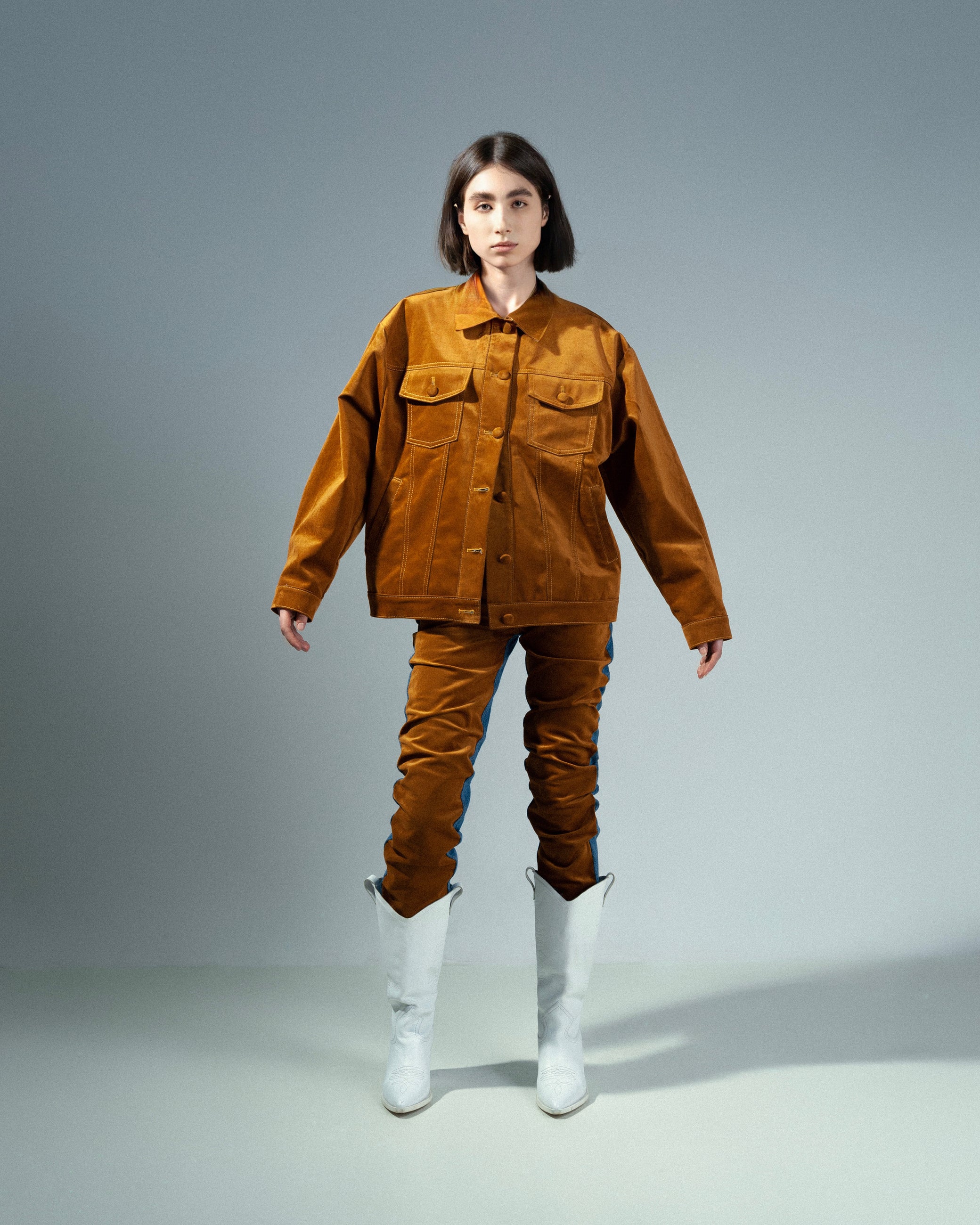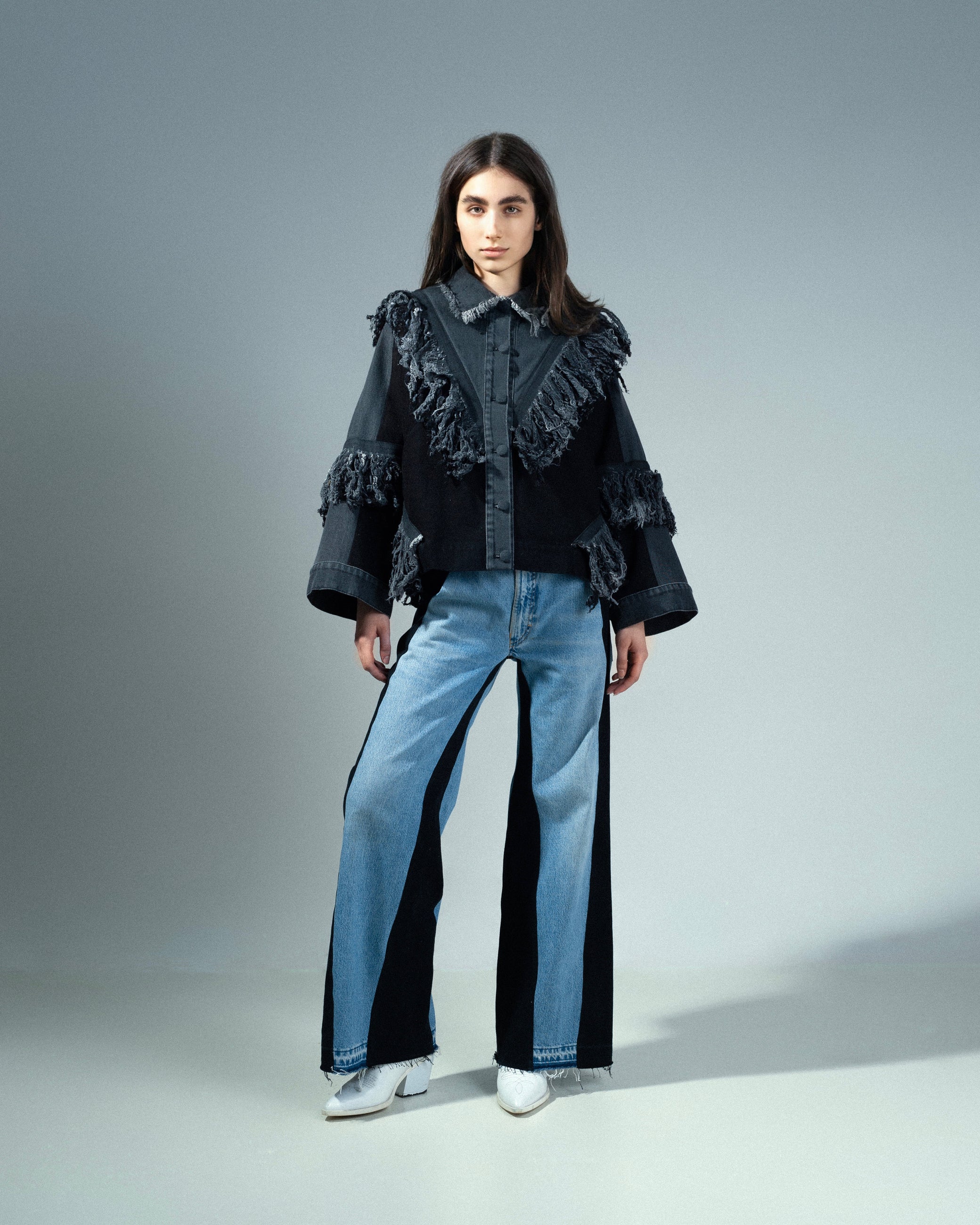 Signature brand silhouettes made with a range of innovative sustainable technologies like Nanocork by LebiuDesign — recycled finish made by cork stoppers — which were used for jackets and shorts to make them more aged-look and utilitarian aesthetics. Besides eco-finish the new collection includes velvet denim by Isko, organic cotton, jacquard denim by Outside Denim Lab, upcycled materials made with used clothes and other certified sustainable fabrics.