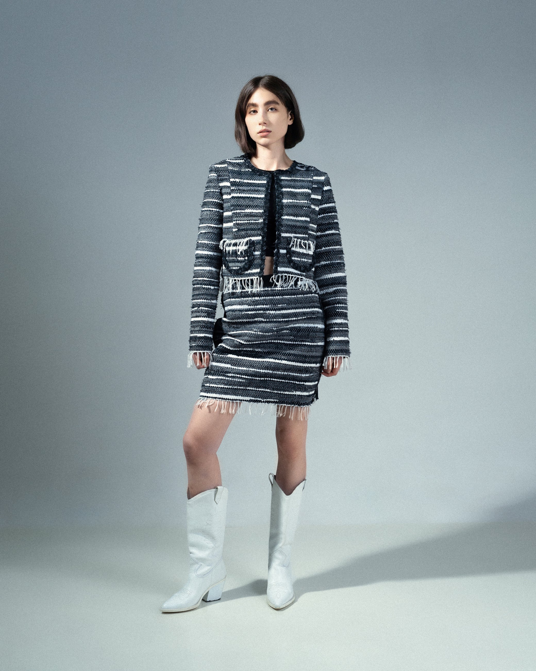 KSENIASCHNAIDER Pre-Spring 2024 features a wide variety of garments made with high-technology fabrics and textures exclusively sourced from the Kering Material Innovation Lab. Those materials were carefully developed through cutting-edge research and technology, ensuring they meet the highest sustainability standards.