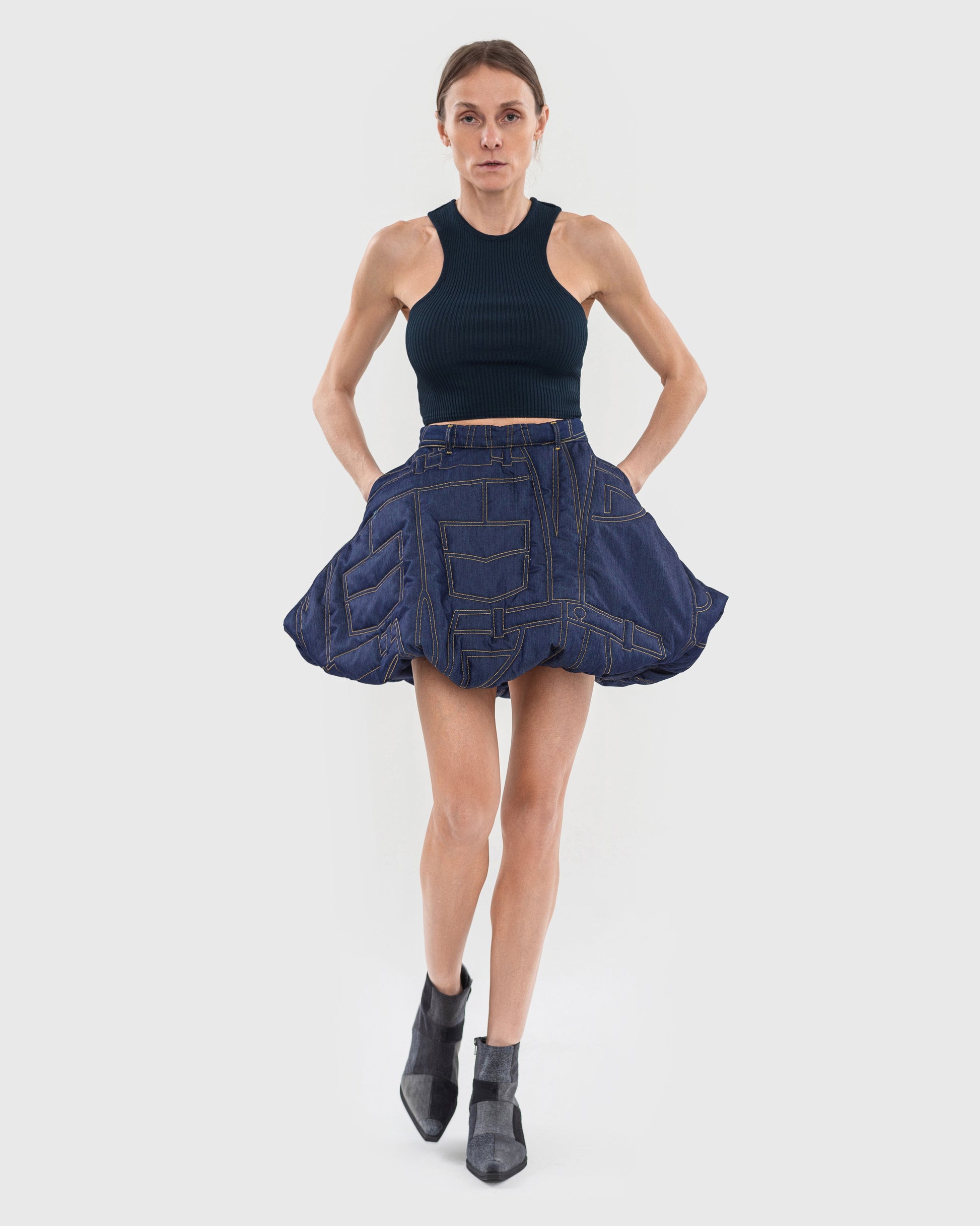 - Quilted balloon mini skirt made from lightweight shirt-like denim