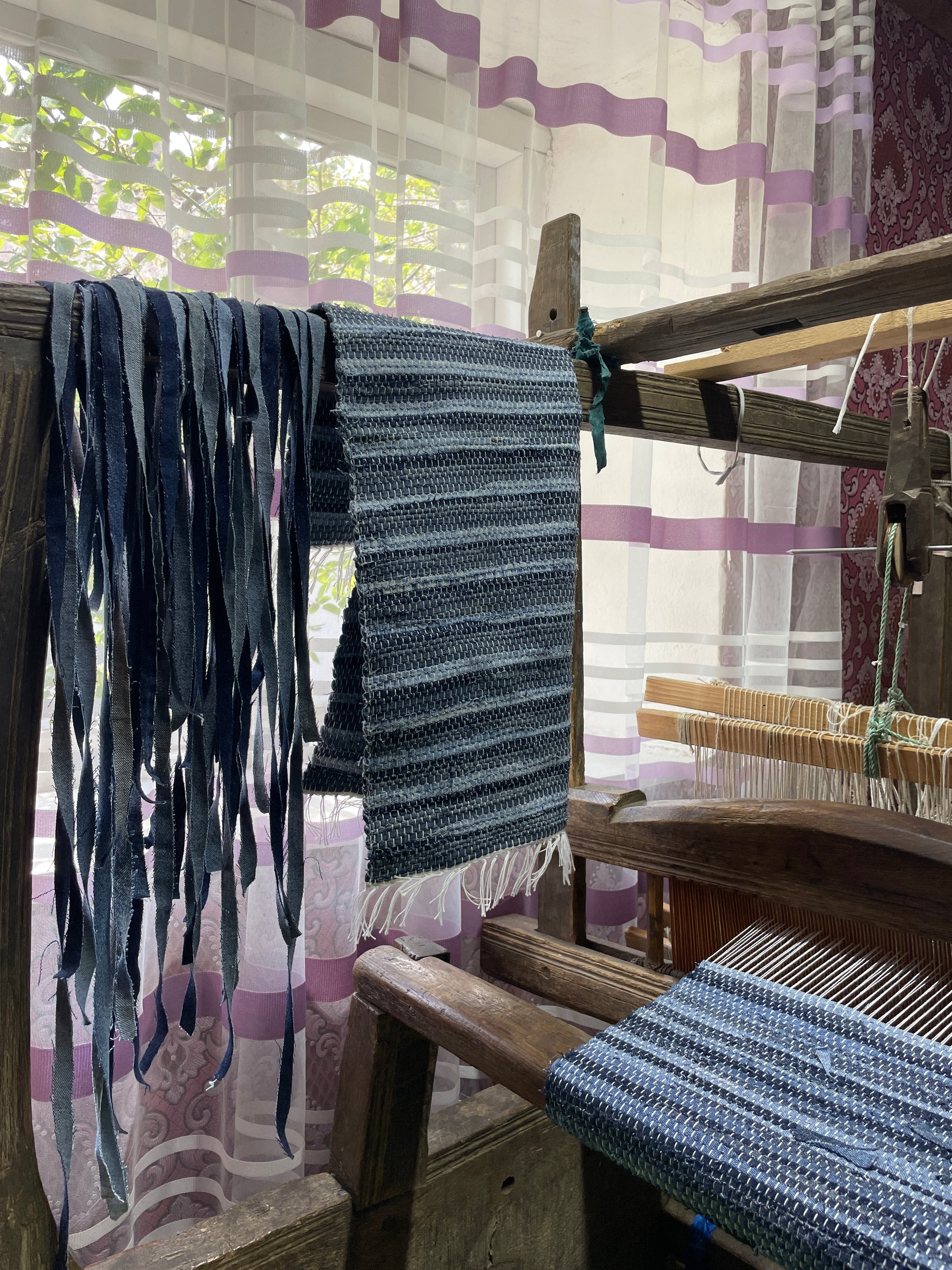 Driven by a mission to prevent manufacturing offcuts—whether vintage or new—from becoming waste, the process begins with meticulously washing and breaking down these remnants into denim yarn. This yarn is then re-woven on a traditional loom, producing a richly textured, tweed-like denim that recalls the artistry of haute couture fabric weaving.